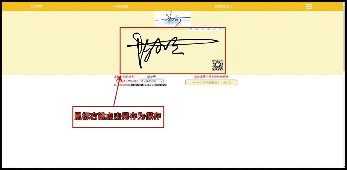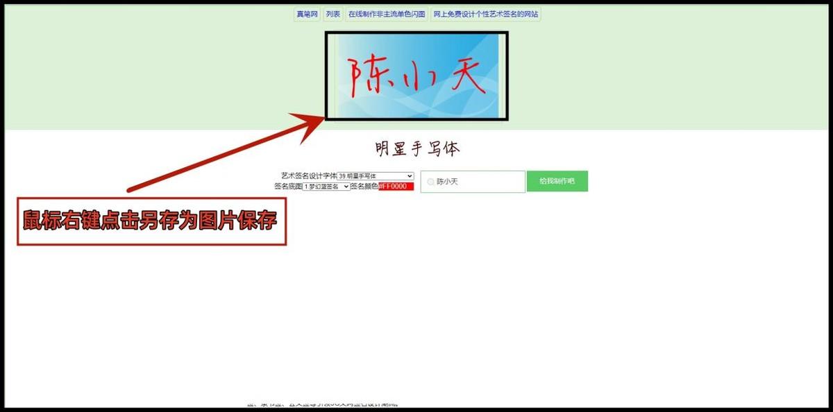 第二步,这样我们的签名就设计好了,鼠标右键点击另存为图片保存就完成了。