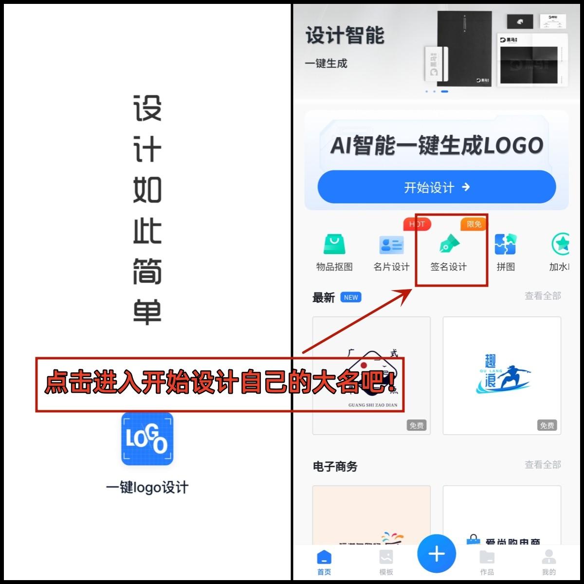 第一步,打开下载好的app,点击签名设计开始设计自己的签名。