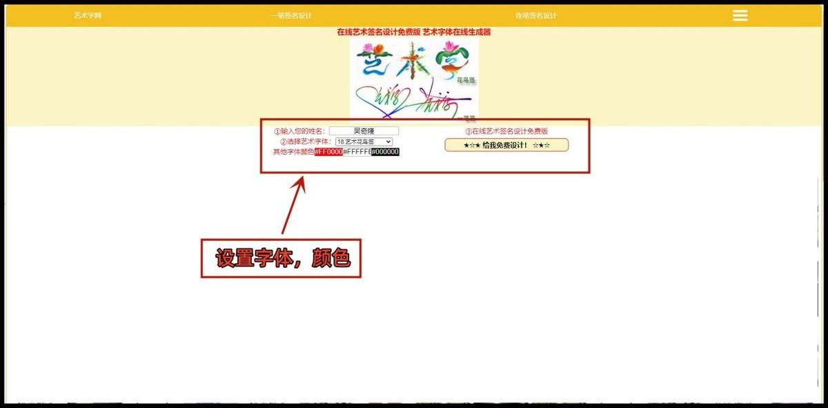 第一步,打开网站,也是直接就可以在文本框里面输入自己的名字了,将字体样式等给设置一下,点击【给我免费设计】就可以生成了。