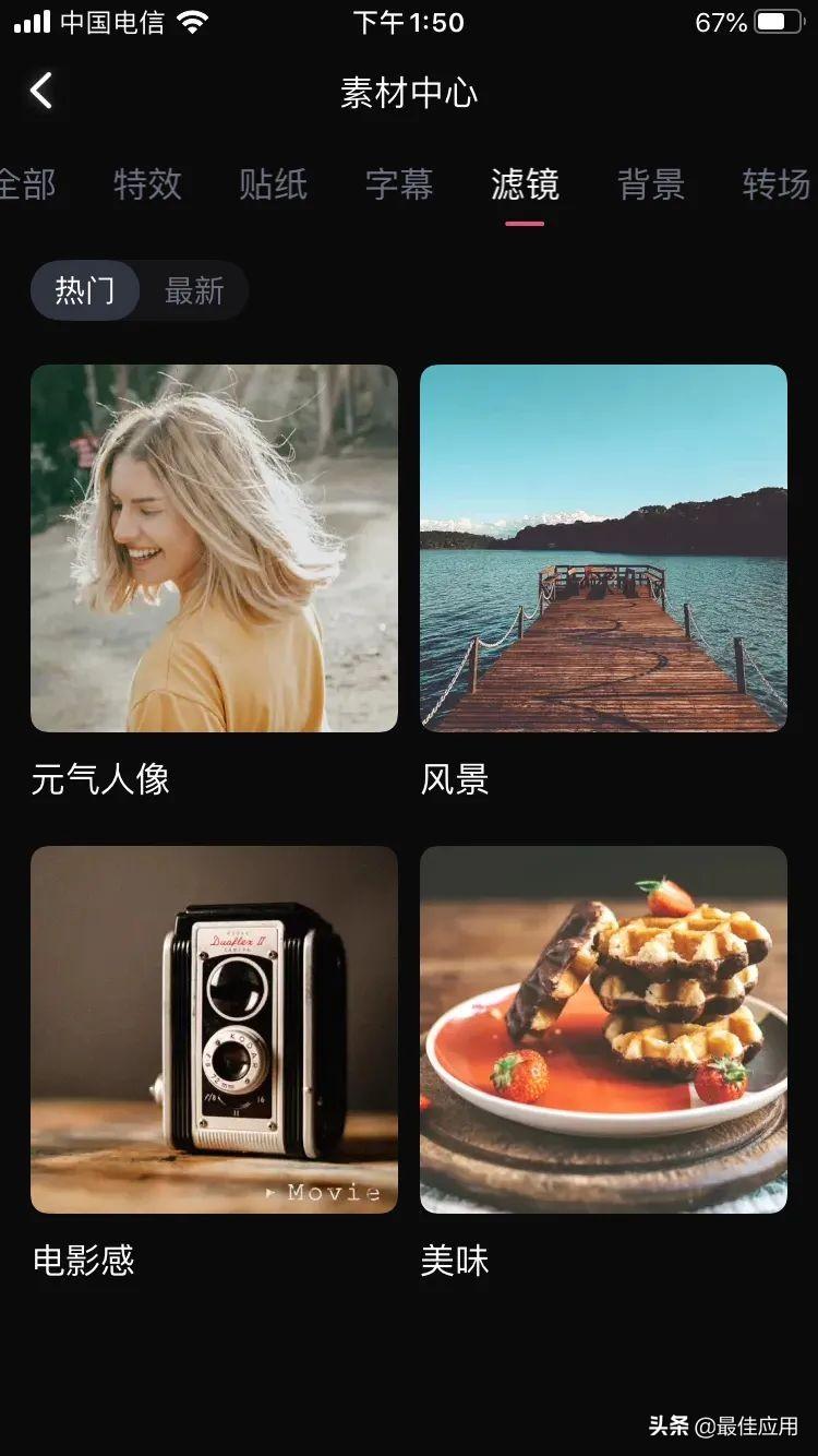 视频滤镜其实和我们图片滤镜一样的效果,比如你拍摄了一个唯美人像视频,如果在增加的视频滤镜,就会让整个视频看起来更有意境感,软件内置了很多热门和最新的滤镜模板,可以直接套用到拍摄好的视频里。