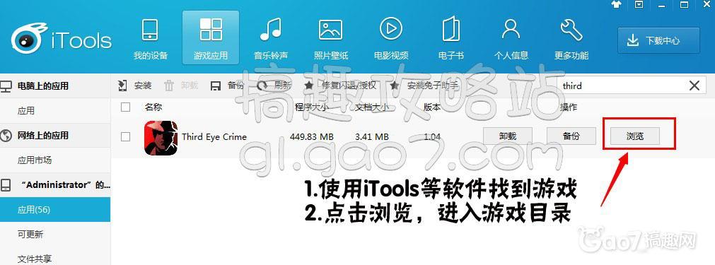 1、使用iTools等软件找到游戏。
