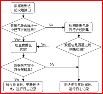 首先根据安全策略保存有用信息在内存中;然后对信息组合进行逻辑或数学运算、相应操作,如允许或拒绝数据包通过、认证连接和加密数据,安全性得到很大提高。
