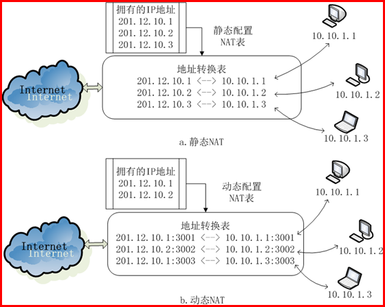 根据NAT工作模式,可分为静态NAT和动态NAT两种。