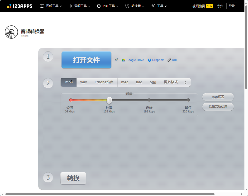 2、Online Audio Converter,Online Audio Converter是一个简单易用且功能强大的在线音频转换工具。它可以转换几乎所有常见的音频格式,包括MP3、WAV、FLAC等。该工具还提供了高质量的音频转换,转换速度快,不需下载任何软件。