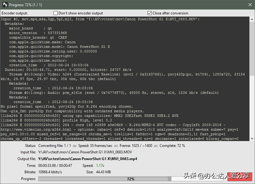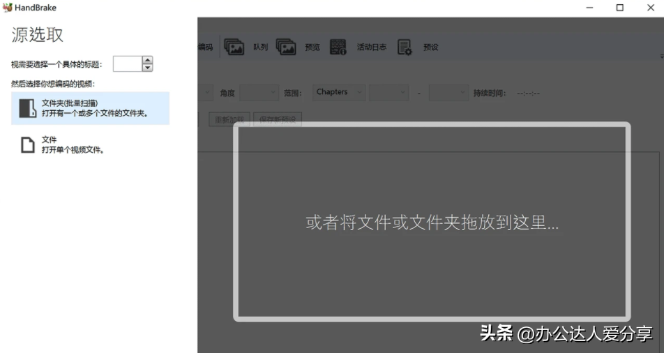 该软件压缩视频速度快,还支持批量转换。直接将需要处理的视频文件或文件夹拖放到HandBrake的界面就可以开始工作了,不想设置太多繁杂的参数,也可以利用内置的快捷【预设】方案帮你快速压缩/转换视频。