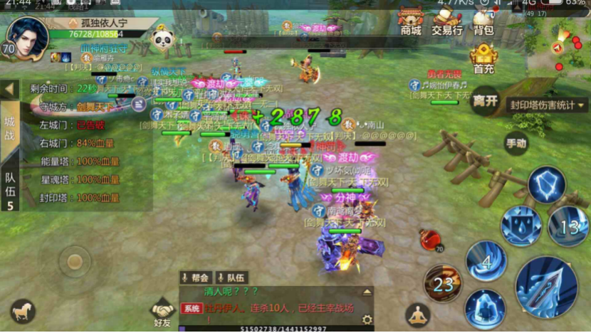 最值得一讲的就是手游蜀门中的超大规模城战! 根据端游传统,城战一共设置了青龙、白虎、血神府三座城池,只要帮会满足要求,就能攻打任一城池。而且为了能让弱小帮会能够参与到城站当中,蜀门手游中的帮会联盟系统可以让最多4个帮会结为联盟,一同攻打城池!