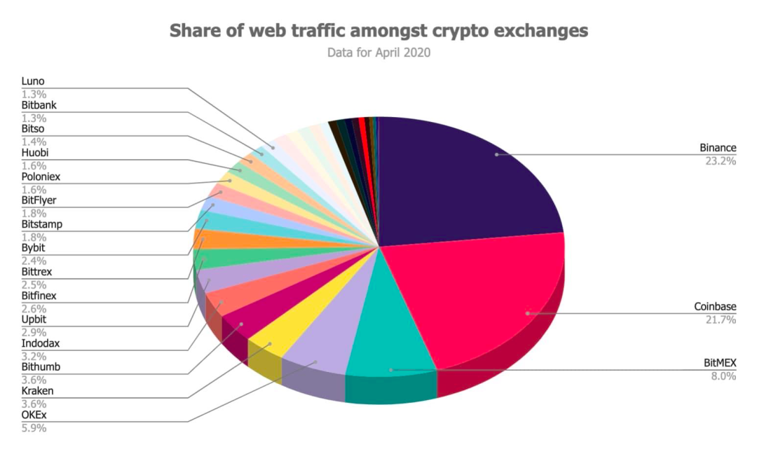 根据TheBlock 报道,币安今年4 月的网站流量占据全部交易所的23.2%,排名第一,TheBlock此前曾率先报道币安上海办公室被查一事。