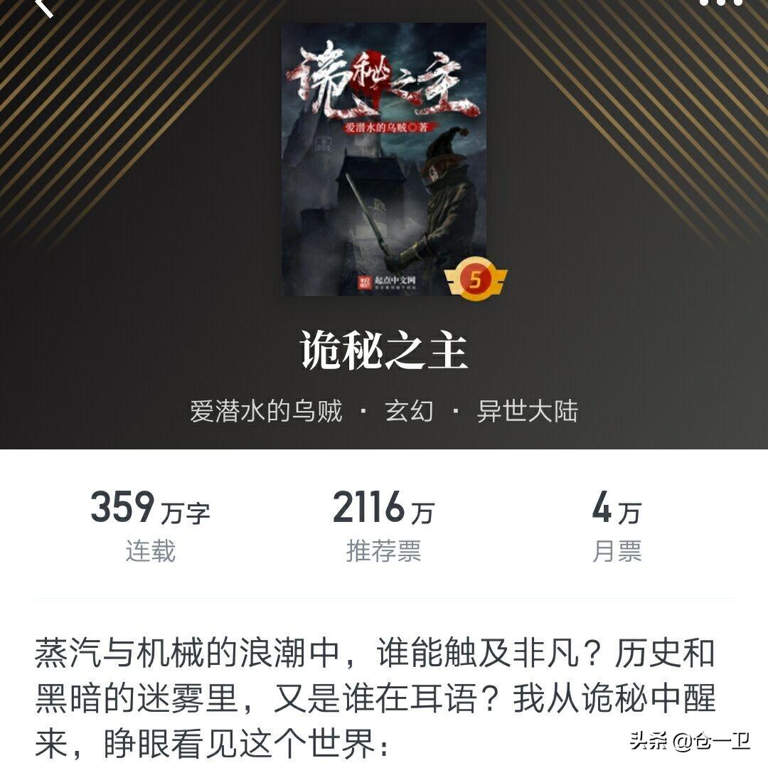 六、爱潜水的乌贼,巅峰之作《诡秘之主》。