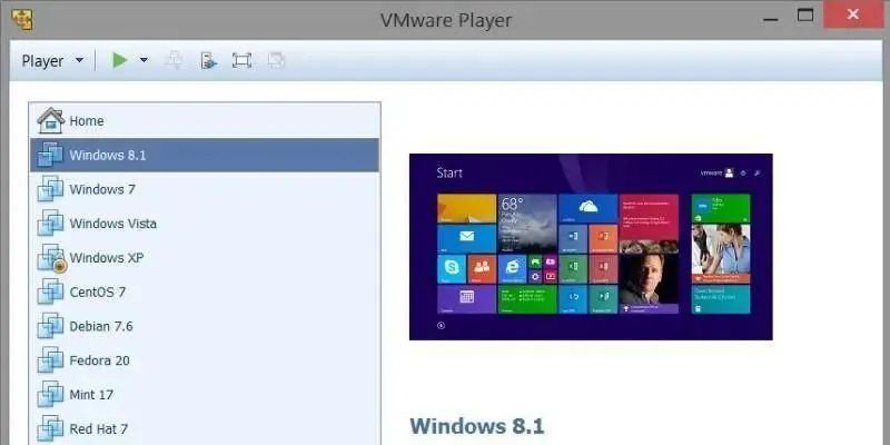 VMWare 是一个老牌的虚拟机软件。它的功能也是最强大的,VMWare Player 是它的免费版本。