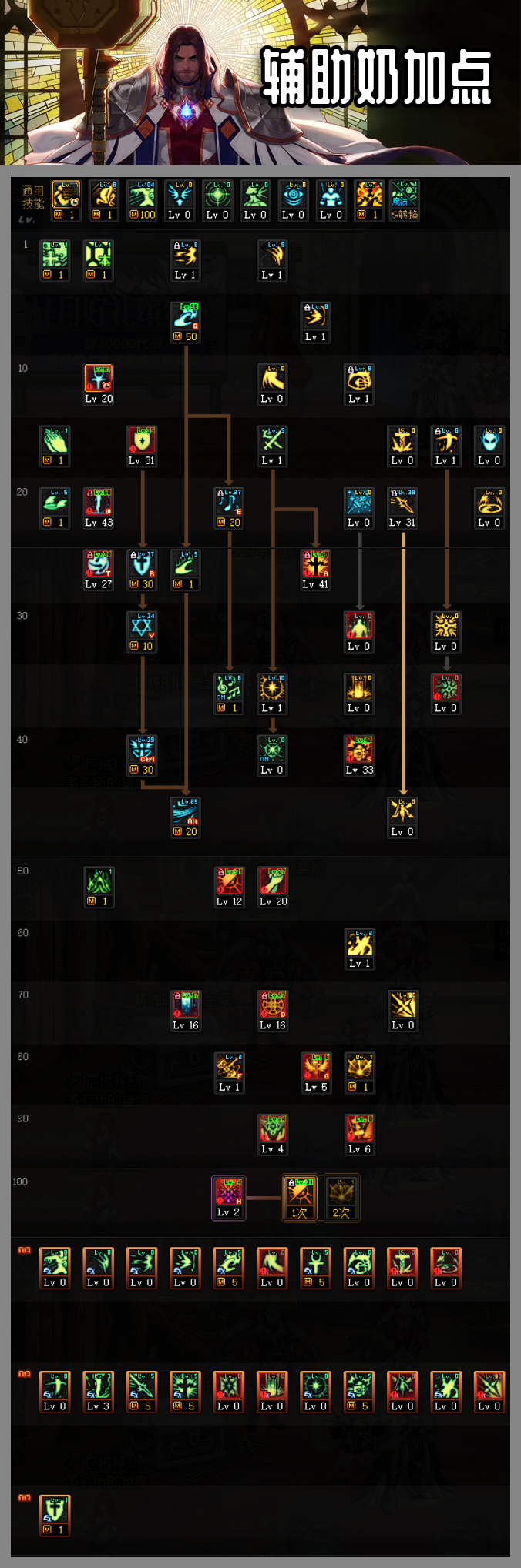 辅助加点其实还是比较简单的,被动守护恩赐,信念光环,天堂谐音三个被动技能点满,而主动BUFF技能荣誉祝福、守护徽章,天籁之音,生命源泉,缓慢愈合,净化、圣愈之风、神圣之光都是需要点满的技能。