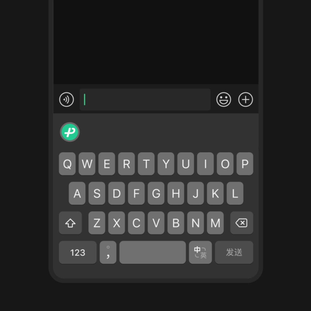 微信键盘界面类似 iOS 的原生键盘,支持系统级自动切换日/夜间模式,左上角有着标志性的图标。
