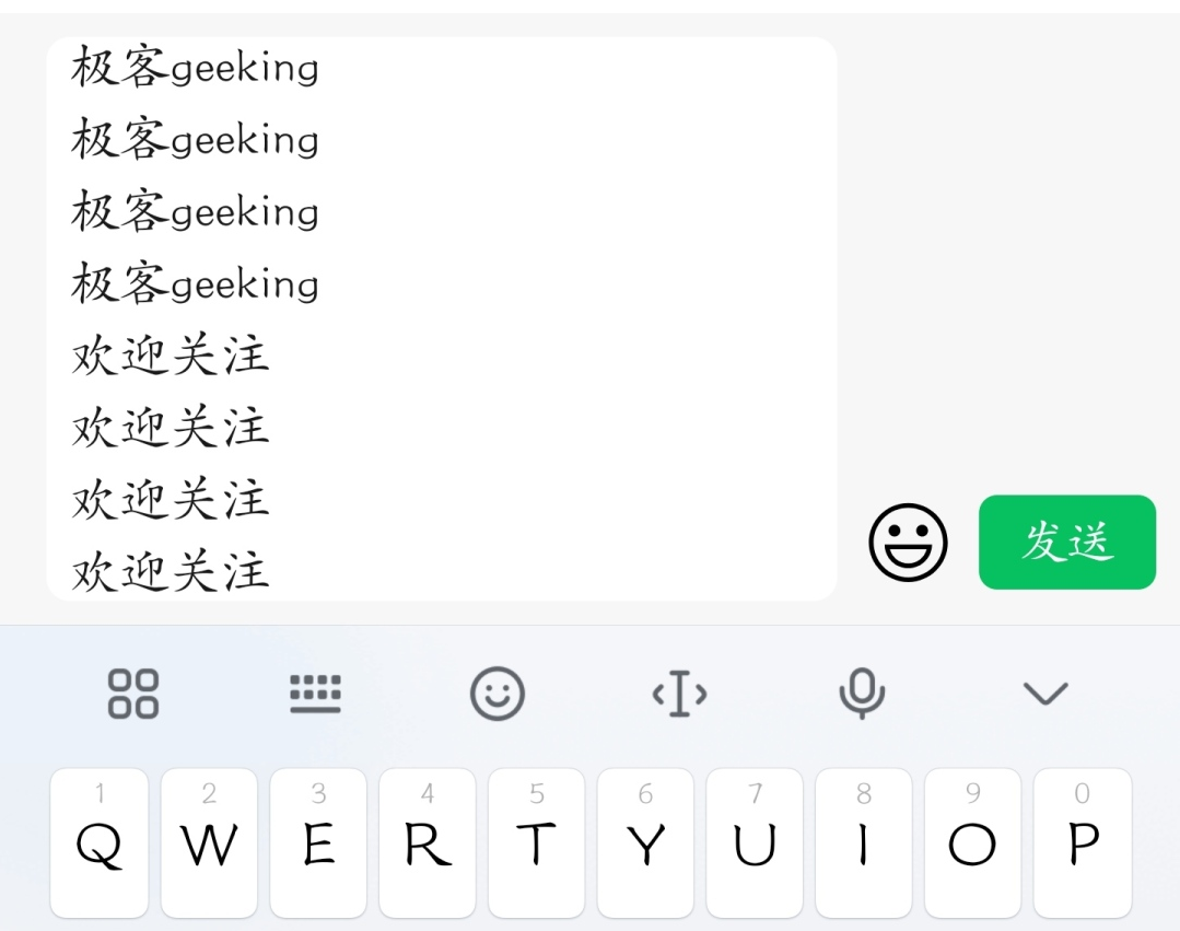 除了全键盘,微信键盘也支持九宫格 、手写 、笔画 、五笔 (好评)和 双拼 键盘的输入,值得一提的是手写的 全屏/半屏 按钮很人性化,可以快速切换手写区域,手写的 笔锋 怪好看的。(但是我字丑写不出好看的感觉)