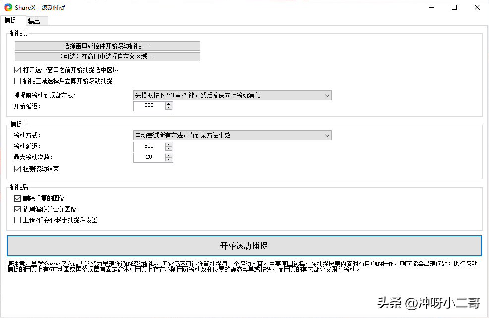 滚动截图是其他截图工具少有的功能,而 ShareX 则配备了。可设置的选项非常多,可以设定捕捉中和捕捉后需要执行的动作,对于经常需要长截图的用户来说非常方便。