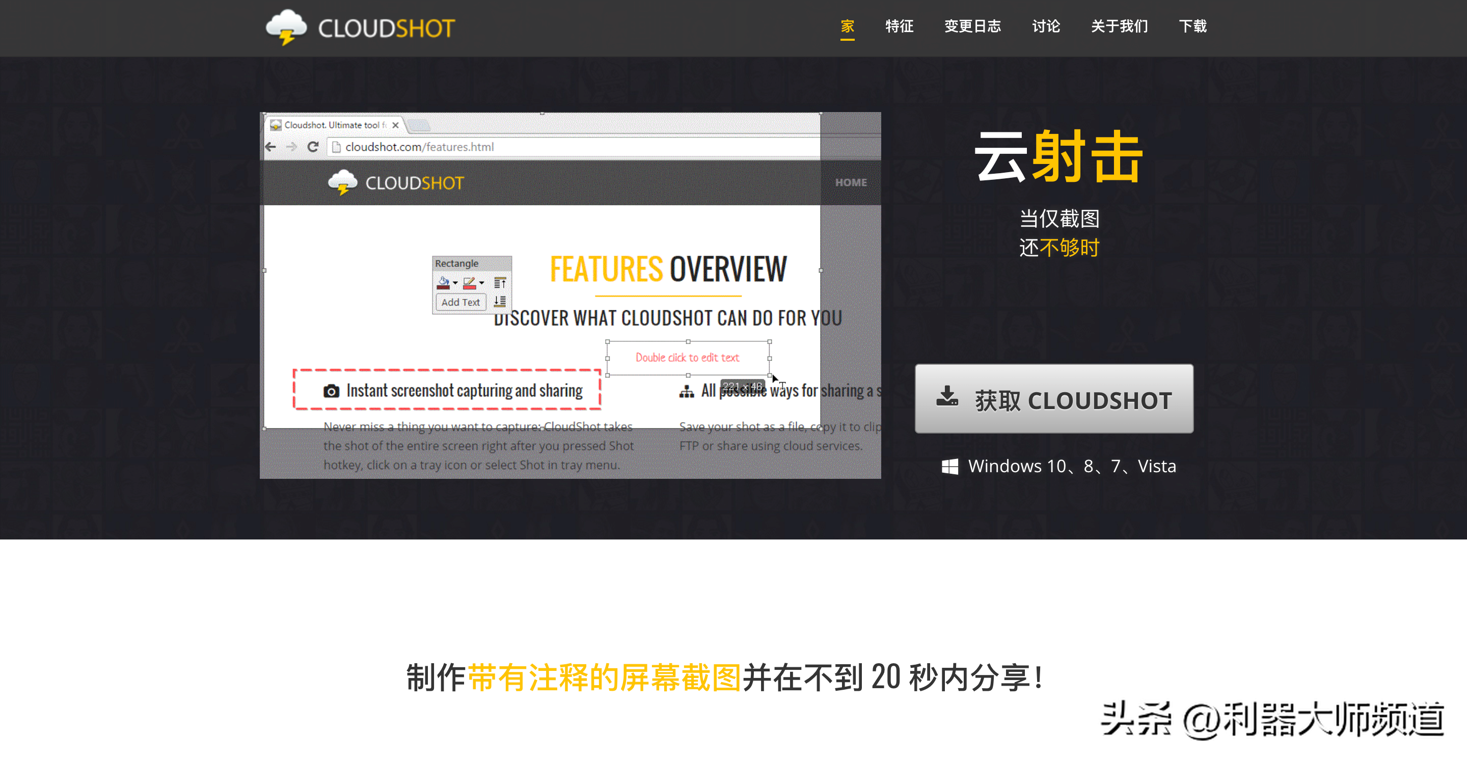 CloudShot 是专为高级屏幕捕获而设计的免费实用程序和工具。该软件能够为常规屏幕截图添加注释。