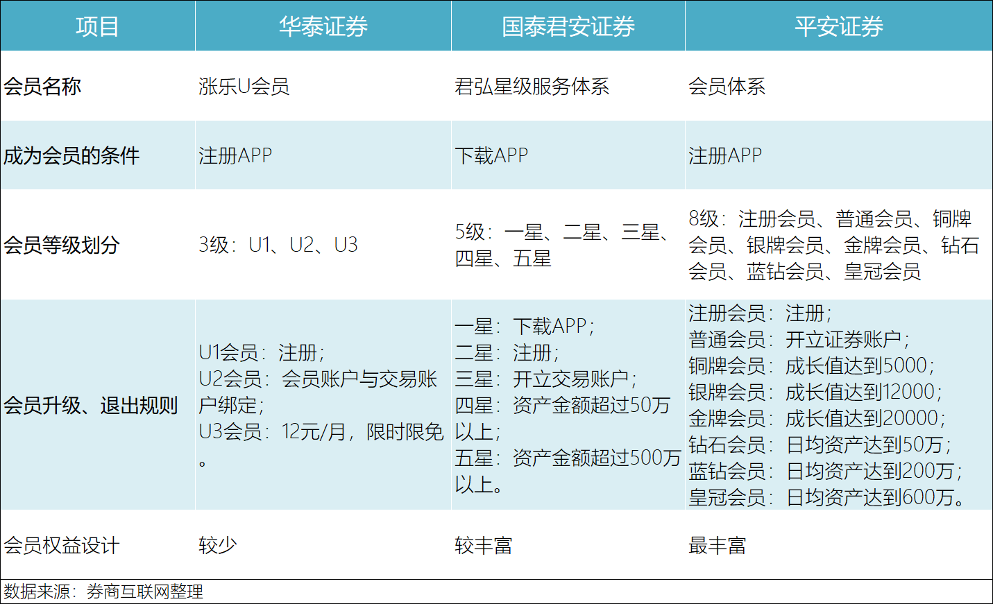接下来,我们就这三家券商的会员体系分别做一个介绍。