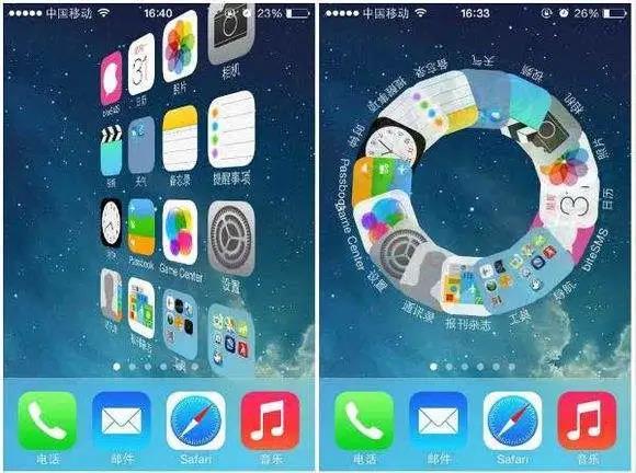 不仅如此,通过越狱后的安装插件。原先连换壁纸都不支持的iPhone桌面。还可以被玩出很多花活。