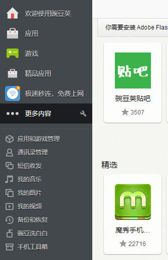 而像豌豆荚、91助手之类第三方应用市场,不但软件资源丰富,可以通过Pc端免流量安装软件。还附带了文件管理、通讯录备份等丰富的功能。所以那时机友们买到安卓机通常都是root之后,安装一个第三方应用市场。