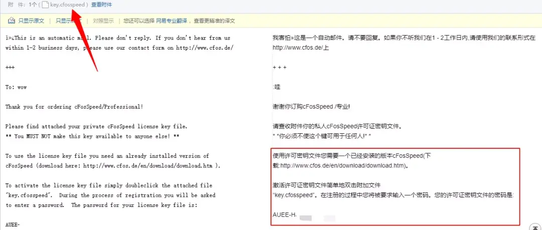 然后根据邮件说明,下载好名为【key】的附件和软件本身。
