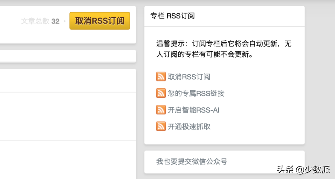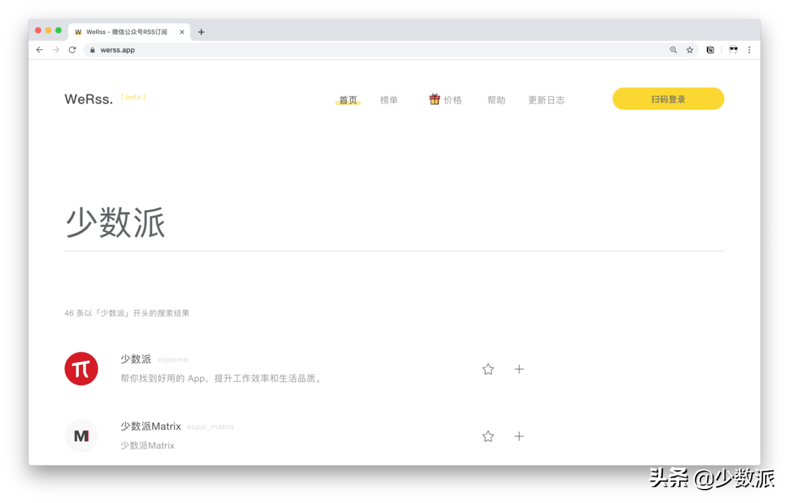 WeRss 搜索「少数派」微信公众号