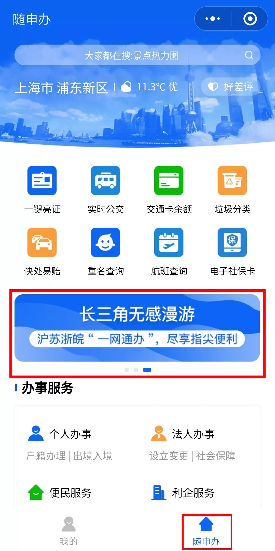 也可主动点击“随申办”频道的“长三角无感漫游”↓