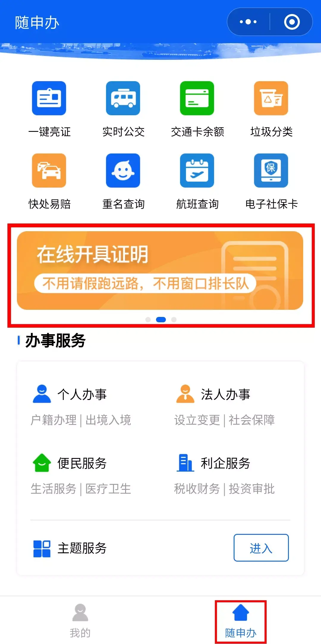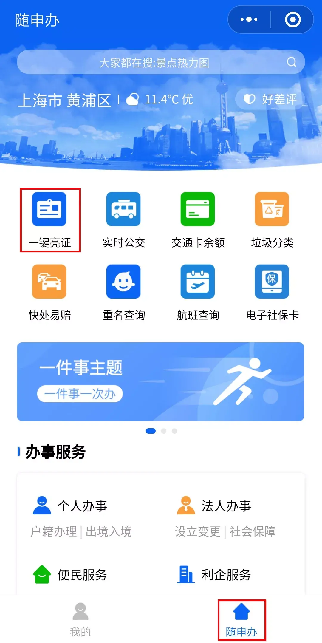 即可在“随申办”频道“一键亮证“”↓