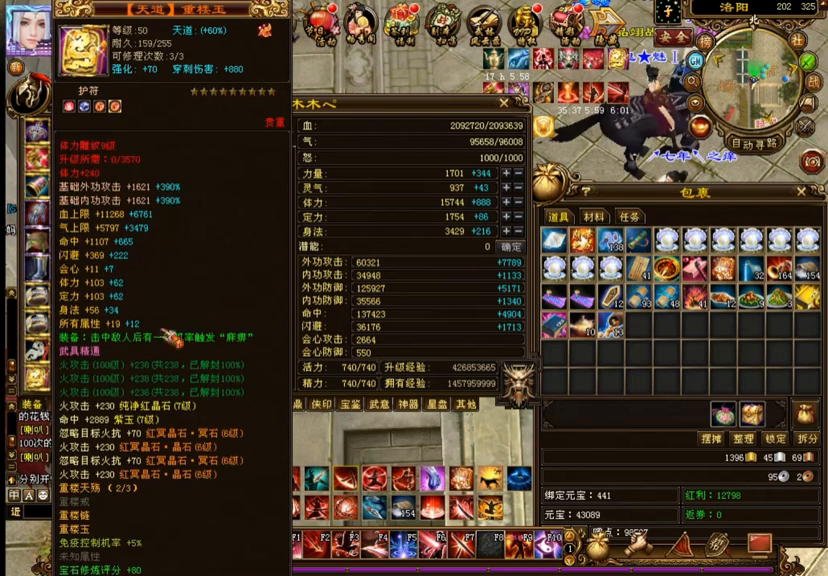 一起来看一下这号的装备,龙纹是单属性303命中会心",体力加会防的一个龙纹。云炼,从龙甲。神器是洗了双属性,帽子是闪避体力,育生法,婚姻防御加所有属性护。二命中阿尔法生法加所有,手套非常的大。闪避体力,慧房加锁鼠,加了99的体力,加了个所属18。看一下这号的外观,坐骑,紫薇雪映约华川,苍兰元圣崇明玉皇邀月,苍澜羽翼还有紫电,都是吸收的坐骑。时装方面也是非常的多。