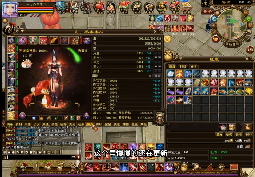 110万分三重楼绝情谷。这是来自龙腾九天区,一起来看一下这个号的配置和属性。面板209万的血,17万7的命中属性攻击达到2610。这是吃了印的效果,把印取消一下。取消印之后是26970的属性,带的是冰抗,冰抗还没有打满。