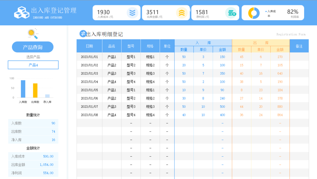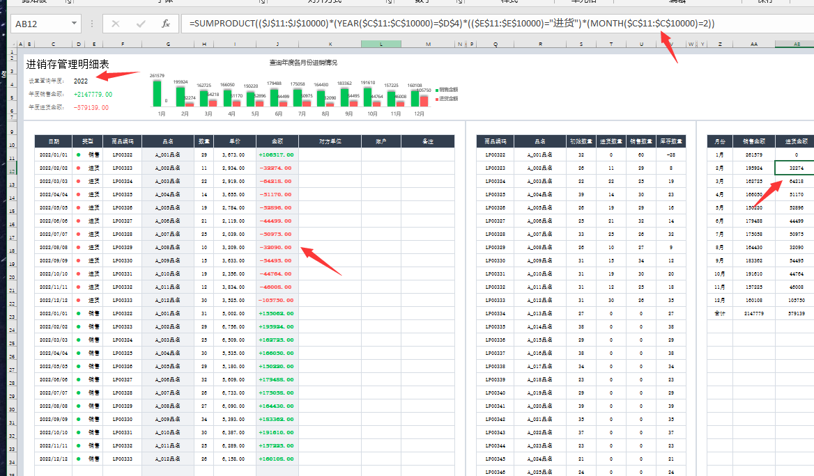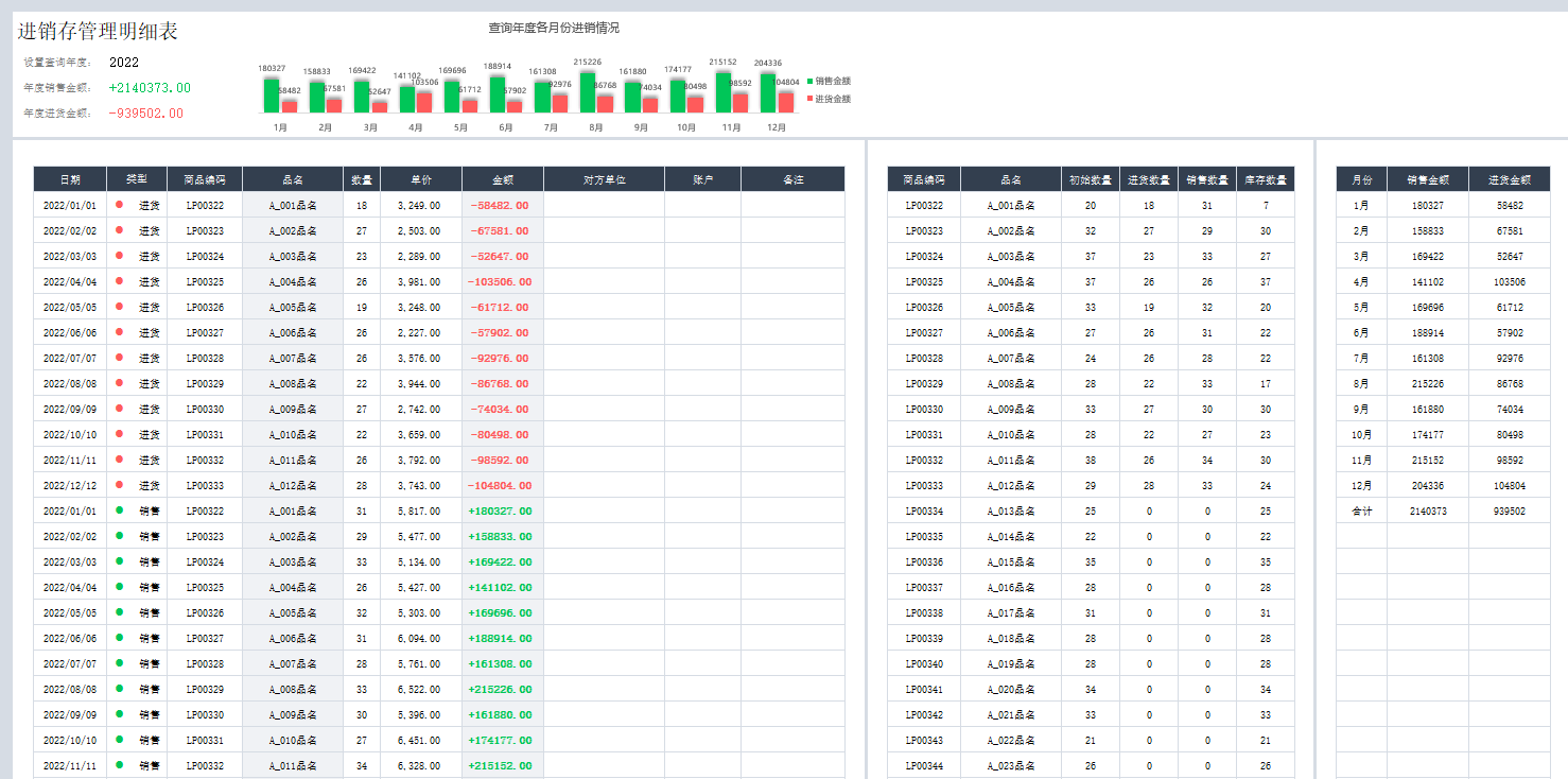 Excel单页进销存管理明细表,自动函数统算,图表展示无脑操作