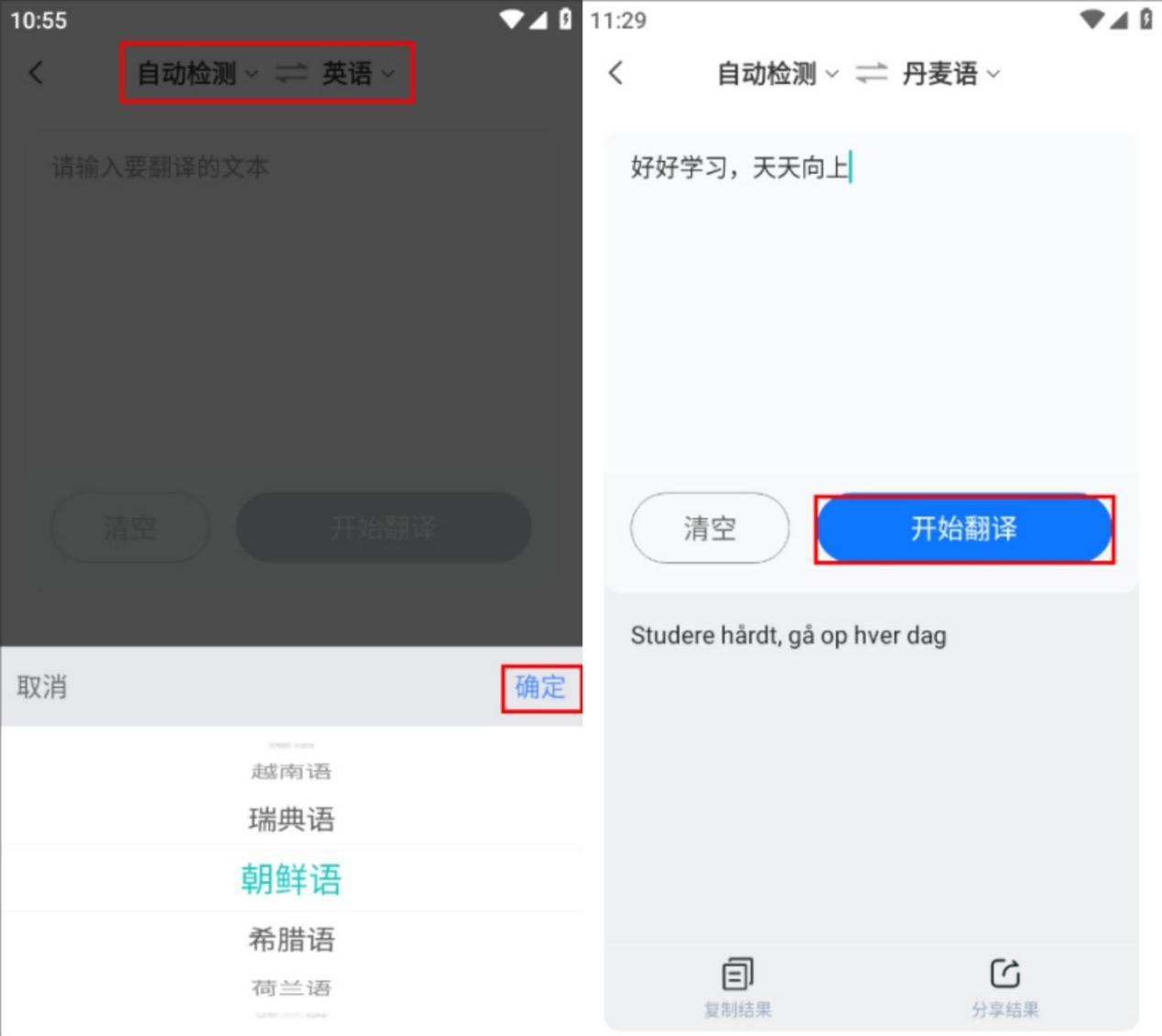 步骤二:里面含有26国的语种,可以供我们自由选择,效果图如下,输入文本后点击【开始翻译】即可完成所有操作,支持对翻译后结果进行复制与分享。
