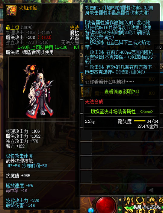 因此绝大多数冰结师都是选择魔杖的,且100级版本本身“火焰地狱”就足够优秀,没有任何理由去选择法杖。