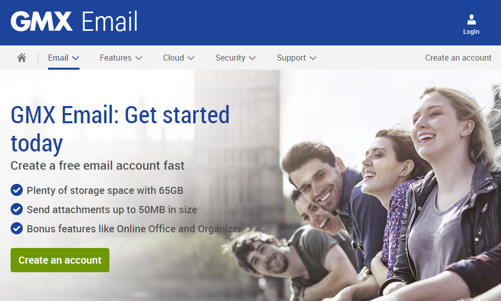 【Mail.com介绍】 :尽管你可能没有听说过GMX Mail,但它已经存在了一段时间(自1997年以来),并且它具有许多值得考虑的功能。GMX创始于德国,致力于打造全世界最优秀的免费电子邮箱。首先,GMX提供65GB的存储空间。免费电子邮件服务需要大量存储空间,使用GMX可以让你在收件箱中保留近半百万条消息!