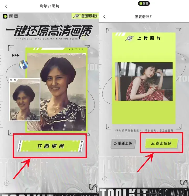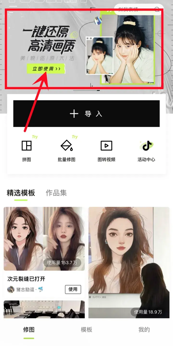 打开app之后,就可以看到这个主题,一键还原高清画质,修复老照片。