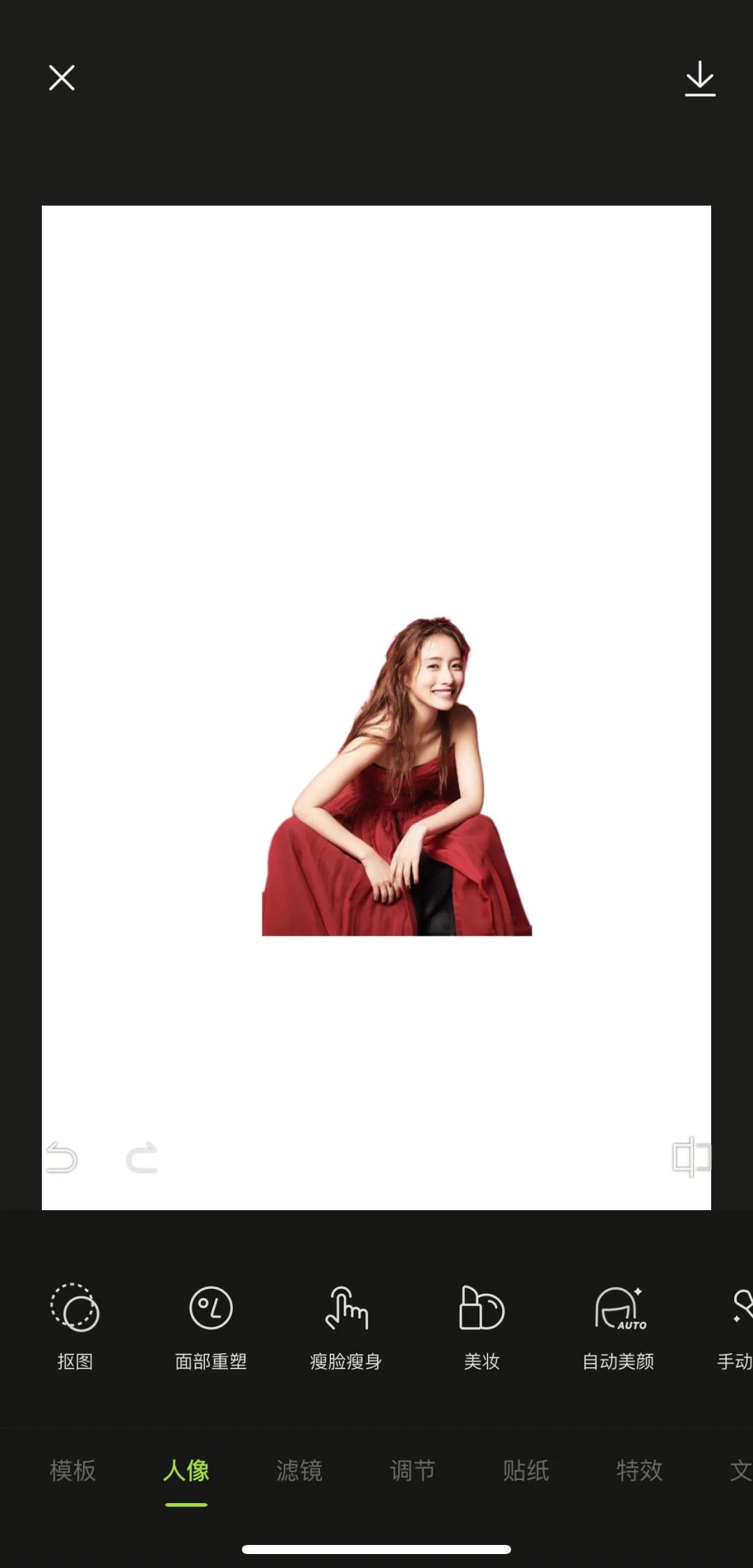 在醒图中,有好几个可以进行抠图的途径,第一个途径是人像功能,人像功能里第一个工具就是抠图,可以快速将照片中的人像进行抠图处理,智能抠图的效果很赞。