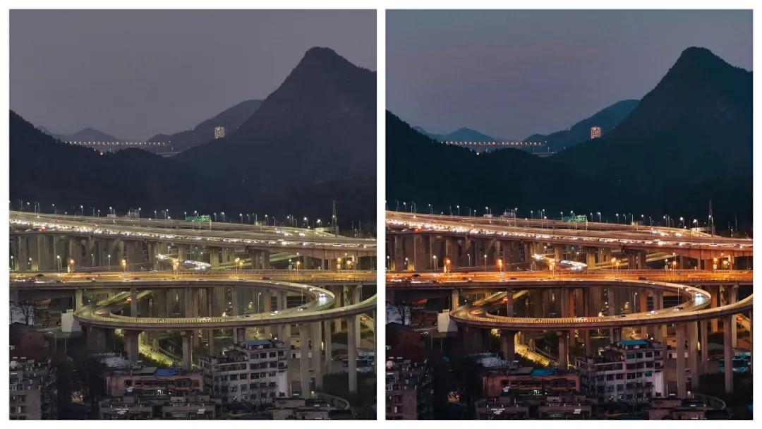 对比度 :主要提升或降低画面亮部与暗部区域的明暗对比。