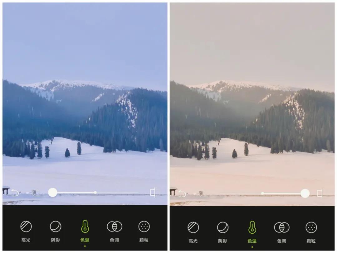 色温:调整画面冷暖色调的工具,降低色温,画面偏冷;提升色温,画面偏暖。