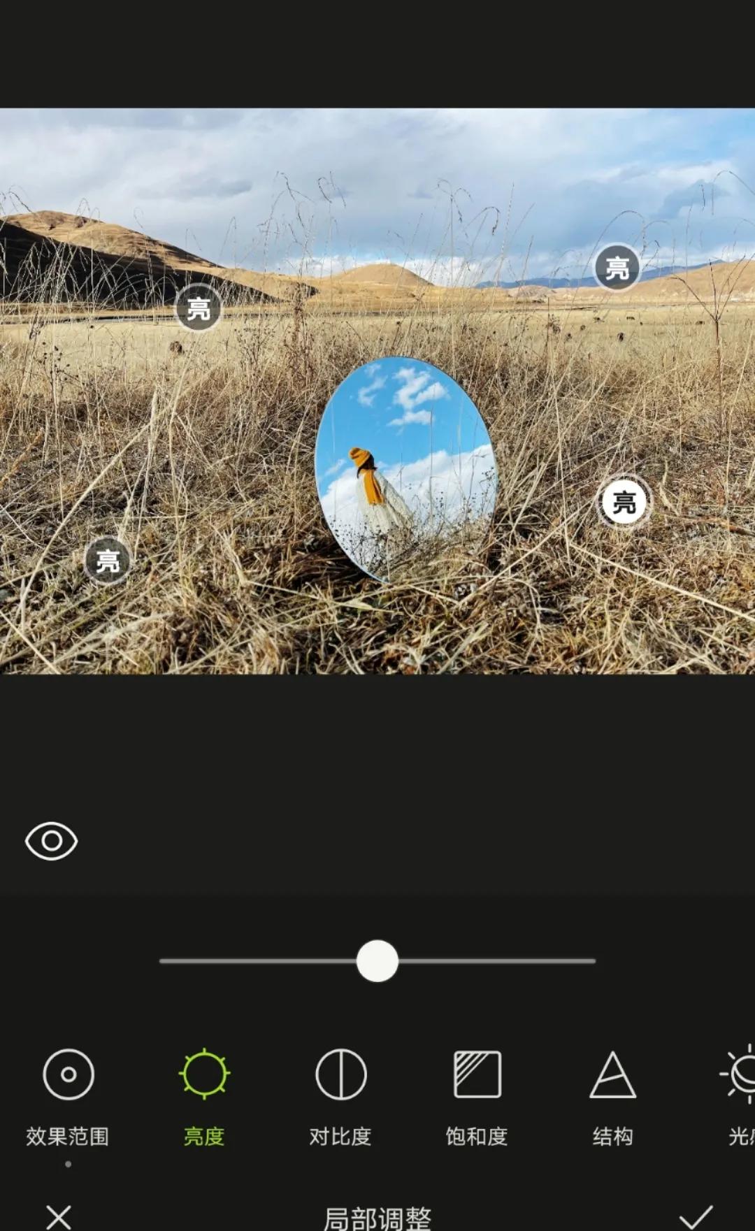 局部调整:可以调整局部区域的亮度、对比度、饱和度、结构、光感、色温色调。
