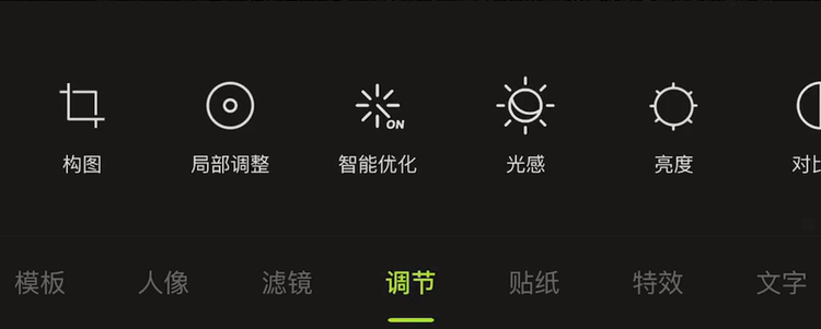 编辑功能当中有16个工具,包括构图调整、局部、亮度、对比度、高光、阴影等等,我们来了解其中的一些用法。