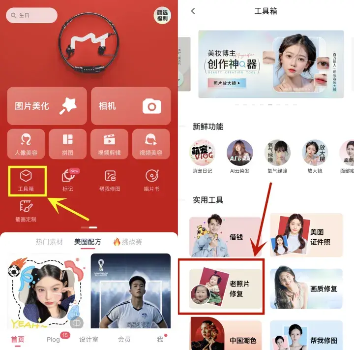 美图秀秀不用我多介绍了吧,应该是属于大家都知道的一个软件了。注意啦,一定得是手机美图秀秀APP,电脑版的修复照片功能要VIP才能使用哦!