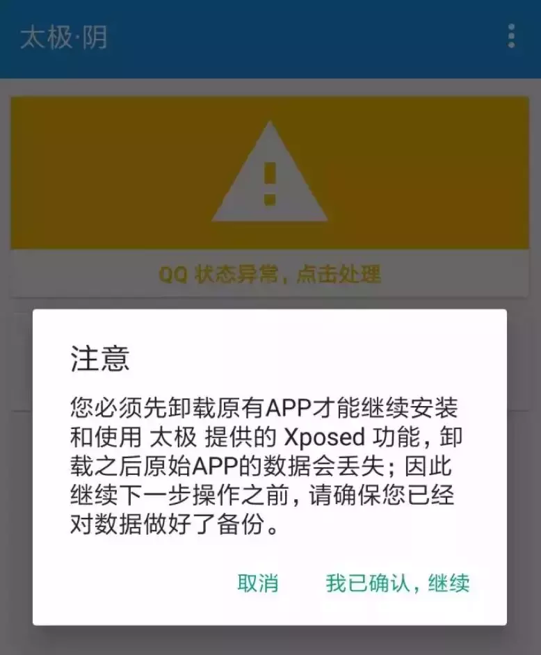 但为了加载模块,你需要在太极里卸载原有应用再重新安装。