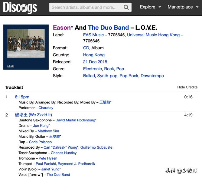 Discogs 最主要的功能是数据库,一般用于检索资料,包括词曲作者甚至细致到每一位制作人员的名字都会被展示 。在这个越来越少人购买实体唱片的时代,这种级别的资料整理特别难能可贵。此外 Discogs 还提供社区和 CD 买卖,不过都是英文和海外卖家,运费也不便宜。