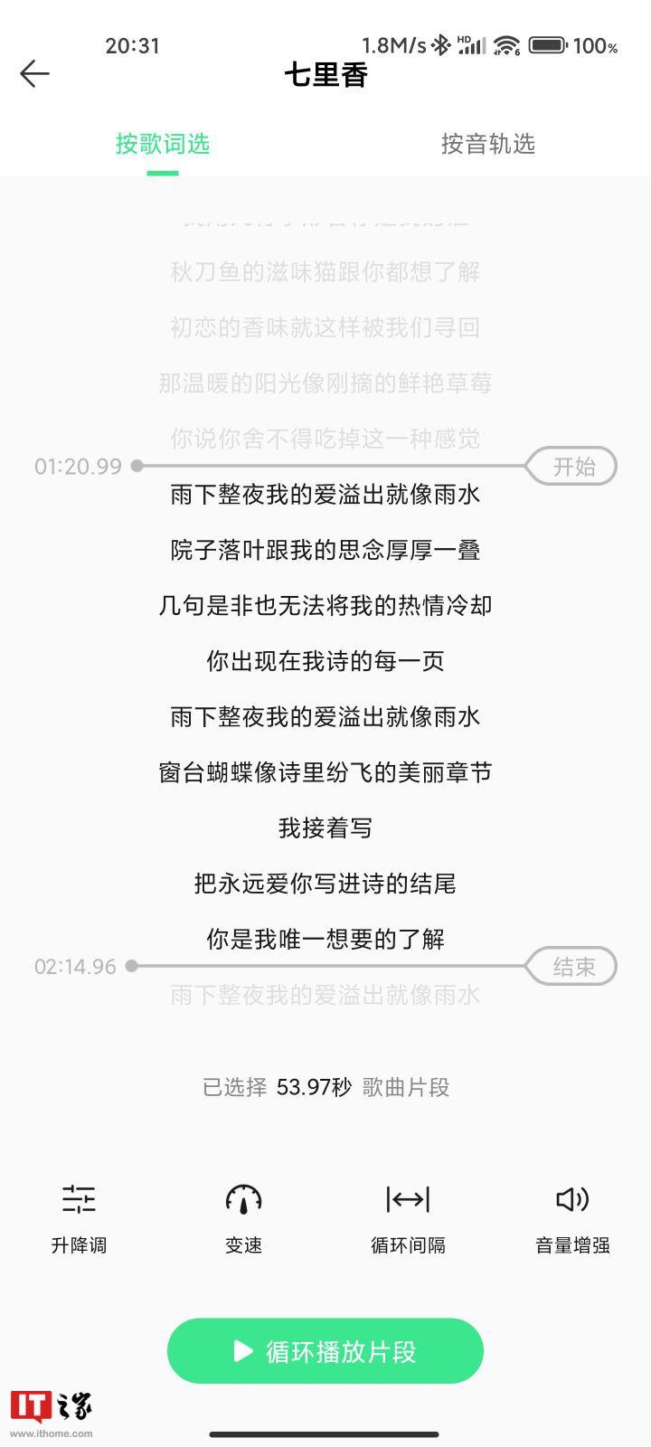 「片段练唱」播放页-更多-片段播放升级,支持调节音调升降