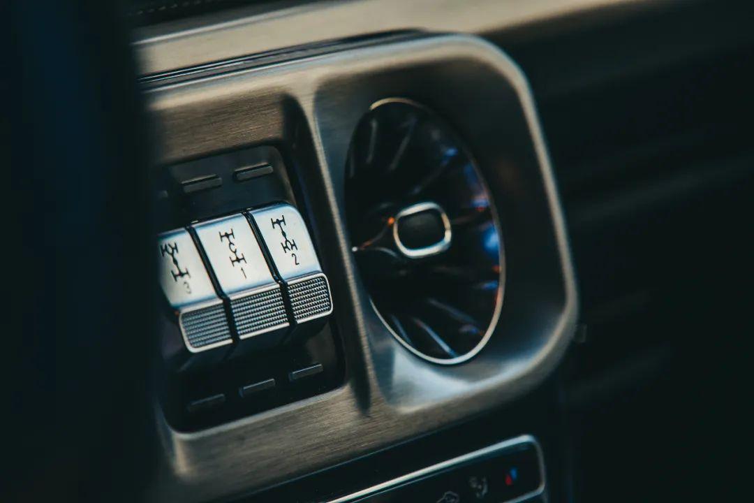 除了强劲的引擎外,标志性的三把锁和强悍的非承载式车身更是给奔驰G级注入了灵魂,前面提到的三把锁就是奔驰G级最引以为豪的前中后三把差速锁,分别为前轴差速锁、中央差速锁和后桥差速锁,而这一代奔驰G级的差速锁有了一些变化,由之前的油压控制变成了电子控制,介入的速度得到提升。