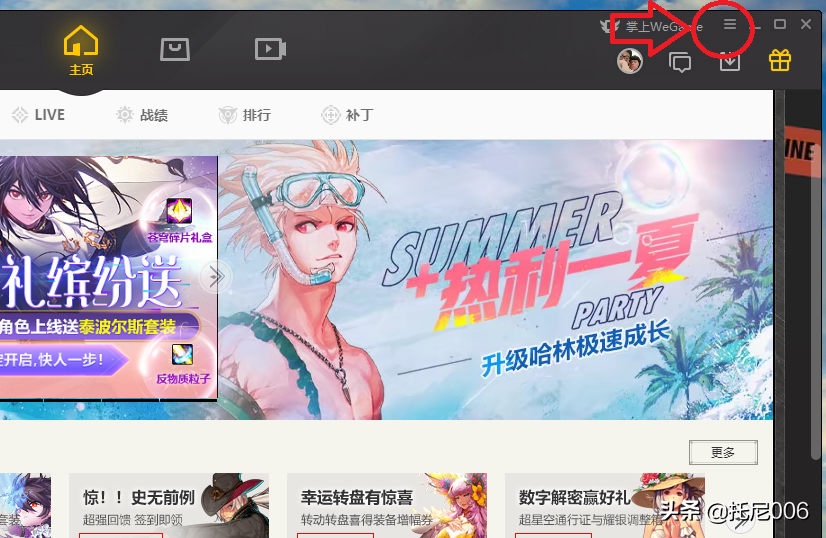 打开WEGAME点击DNF再点击右上角红色箭头标识的三条小横杠选择辅助工具。