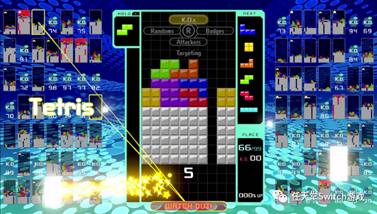 而在Switch上,也出现了《俄罗斯方块99》这样的创新玩法。在线上与素未谋面的99位对手对战,根据战况的不同而选择“追击”“反击”“瞄准徽章”“随机”等四种战略,通过消除方块来攻击对手。真可谓是四面楚歌,孤身作战!