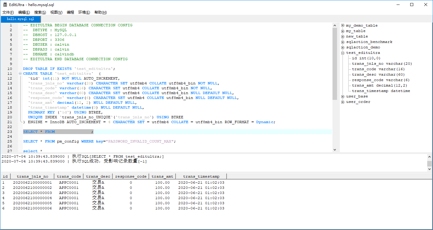 EditUltra 是中国人开发开源的对标 UltraEdit 的小巧快速又功能丰富的文本/源码编辑器(内嵌数据库客户端、Redis客户端),她基于开源的富文本编辑控件Scintilla提供的基本文本编辑能力,实现了一个完整的文本/源码编辑器,还直接执行SQL和Redis命令功能,整个软件只有10MB(不包含Oracle/MySQL客户端库)。