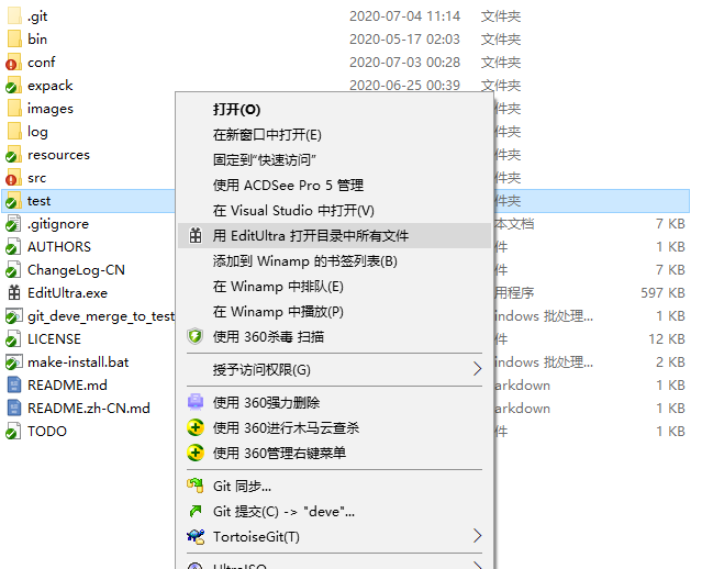 如果需要在WINDOWS资源管理器中右键菜单增加“打开目录中所有文件”功能,执行菜单环境->目录右键弹出菜单。