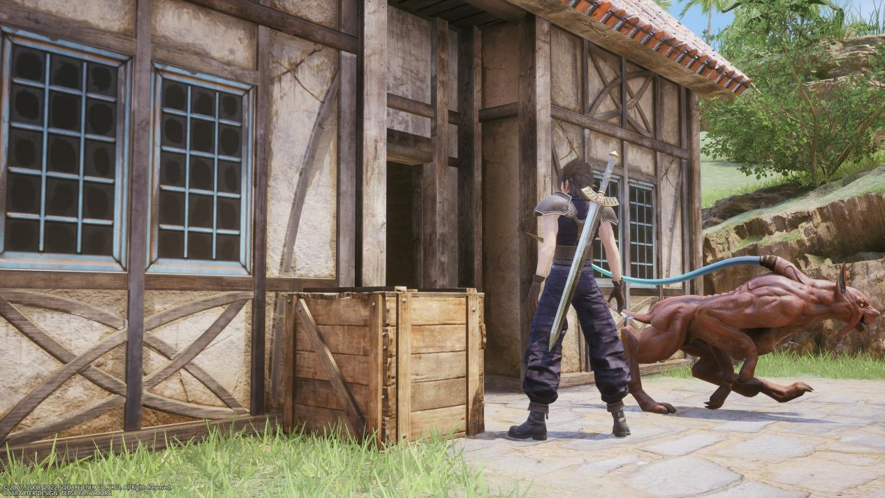 比如,在游戏中探索民宅时,扎克斯会打开民宅门时,从中会跑出一只野兽,扎克斯随即愣在原地,之后就会进入战斗。原版游戏的该场景可以说是一种无声的幽默,而《最终幻想7:核心危机 重聚》所展现的,却是突然安静下来的突兀。