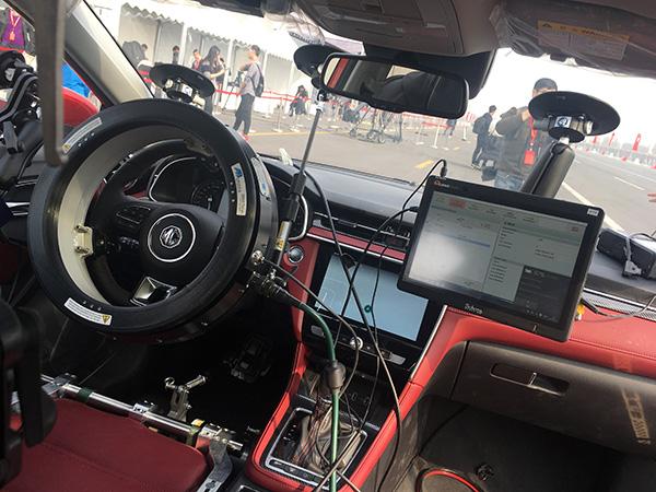 测试车辆内部照片,为避免人为干预,全程由机器人进行操控。澎湃新闻记者 李皙寅 摄