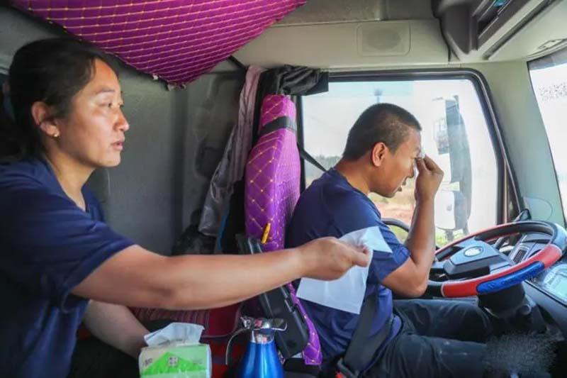 本来想劝自家老公就这么退休回家的李慧玲,拗不过他的想法,又担心他自己一个人在外面跑车,干脆就跟丈夫上了车,负责平日里的找货运货,每到晚上也不睡觉,而是在一旁陪着丈夫,害怕他因为疲惫而走神睡觉。