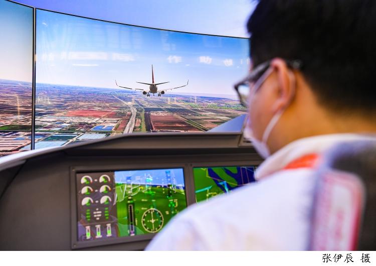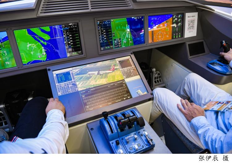 从小就拥有的机长梦,今年在第四届进博会技术装备展区的霍尼韦尔公司展台的飞机模拟机上实现了。